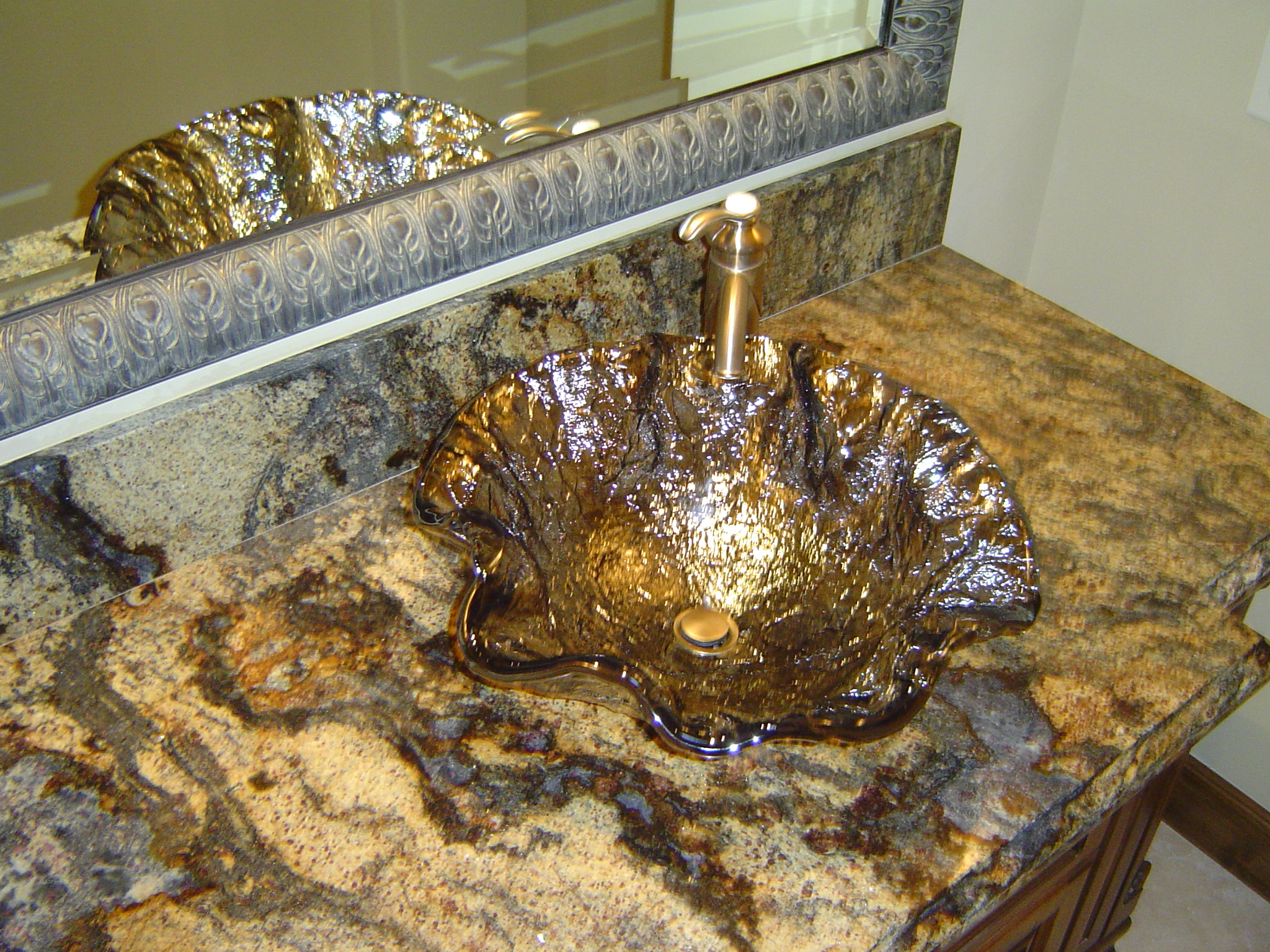 Sinks in modern homes are no longer just your run-of-the-mill white porcelain sinks (although there are some niffty new designs in white too). Multiple elements are being utilized by designers and builders to become functional works of art, much like our Invisible Art Glass.