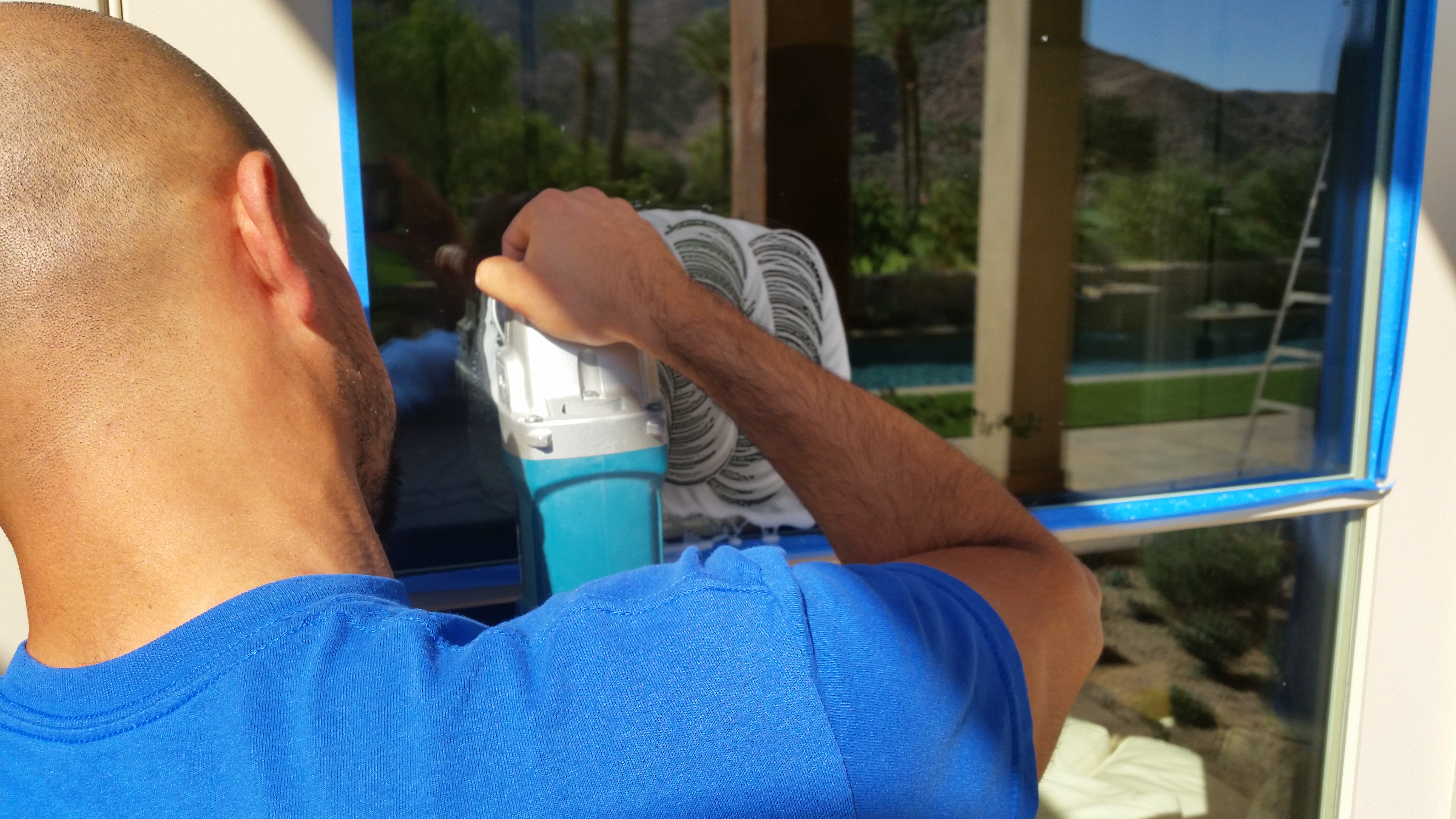 Windows are frequently scratched by razor blades or other sharp objects that come into contact with the glass during the construction or rennovation of residential, commercial, industrial and Homeowners association properties. Often the glass is succeptable to scratching because of the tempering process performed on the glass. This process of cutting and re-baking or tempering the glass can fuse the glass dust particles onto the surface. When they are dislodged by razor scrapers, the debris causes fine scratches where the razor and glass dust meet on the tempered surface.