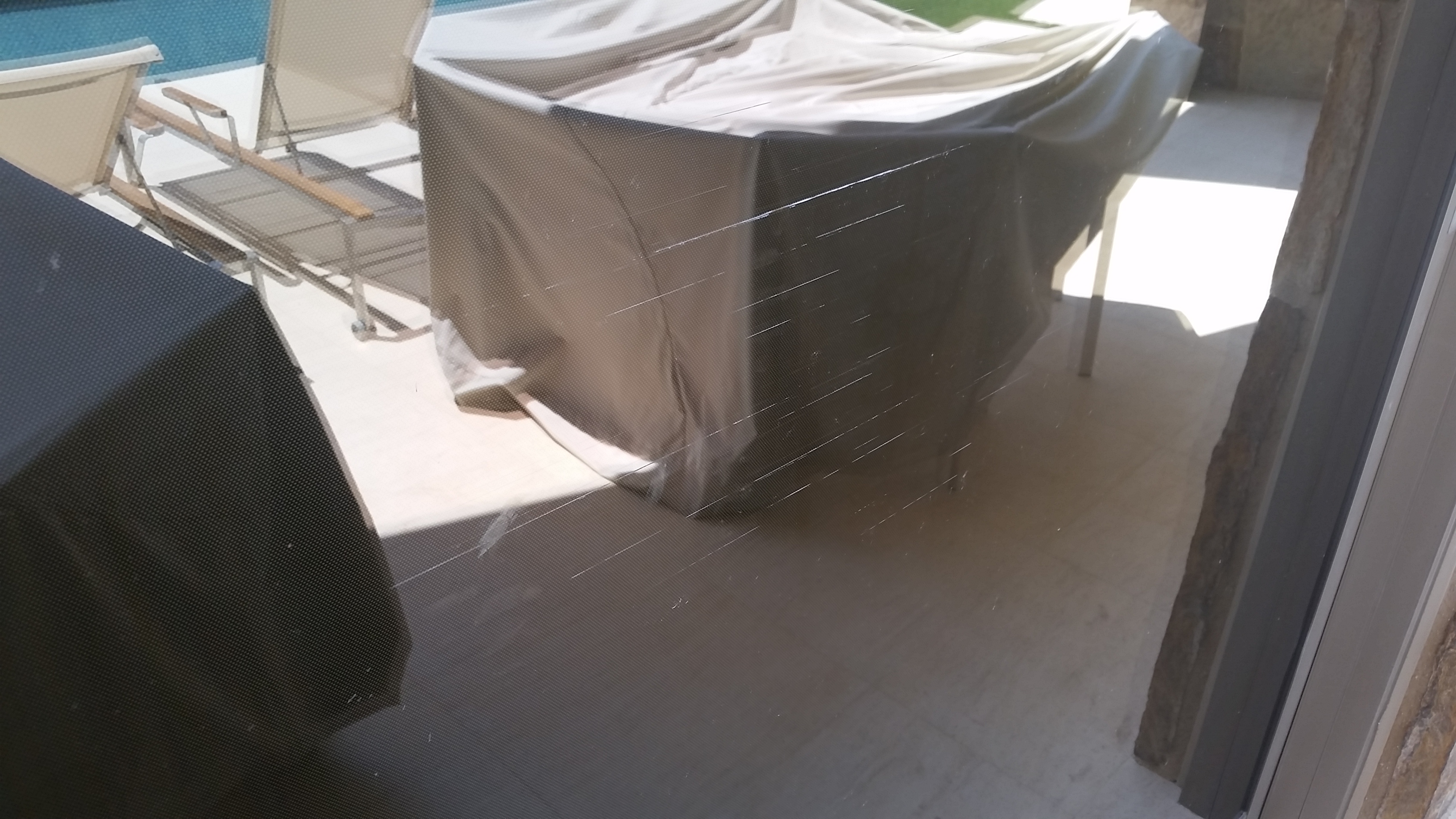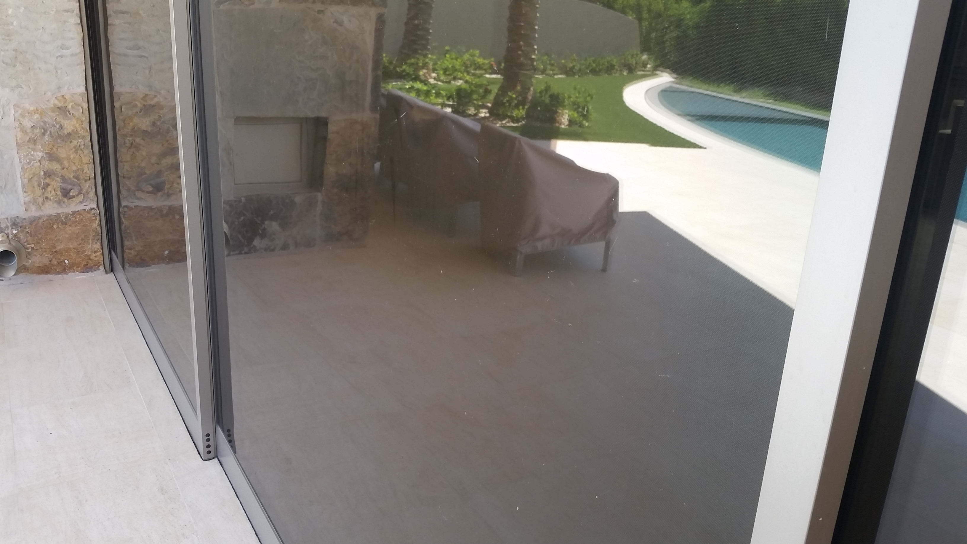 Large expansive sliding glass doors can sometimes pass across the secondary stationary glass panel causing the metal to scrap across the bowing glass surface causing deeply engrained scratches. These scratches can be deep enough to cause fracturing of the surface, the deepest and most damaging kind of scratch. We can fix these difficult scratches and reduce the liklihood of their return by applying the Diamon-Fusion® coating to the glass sliding doors.