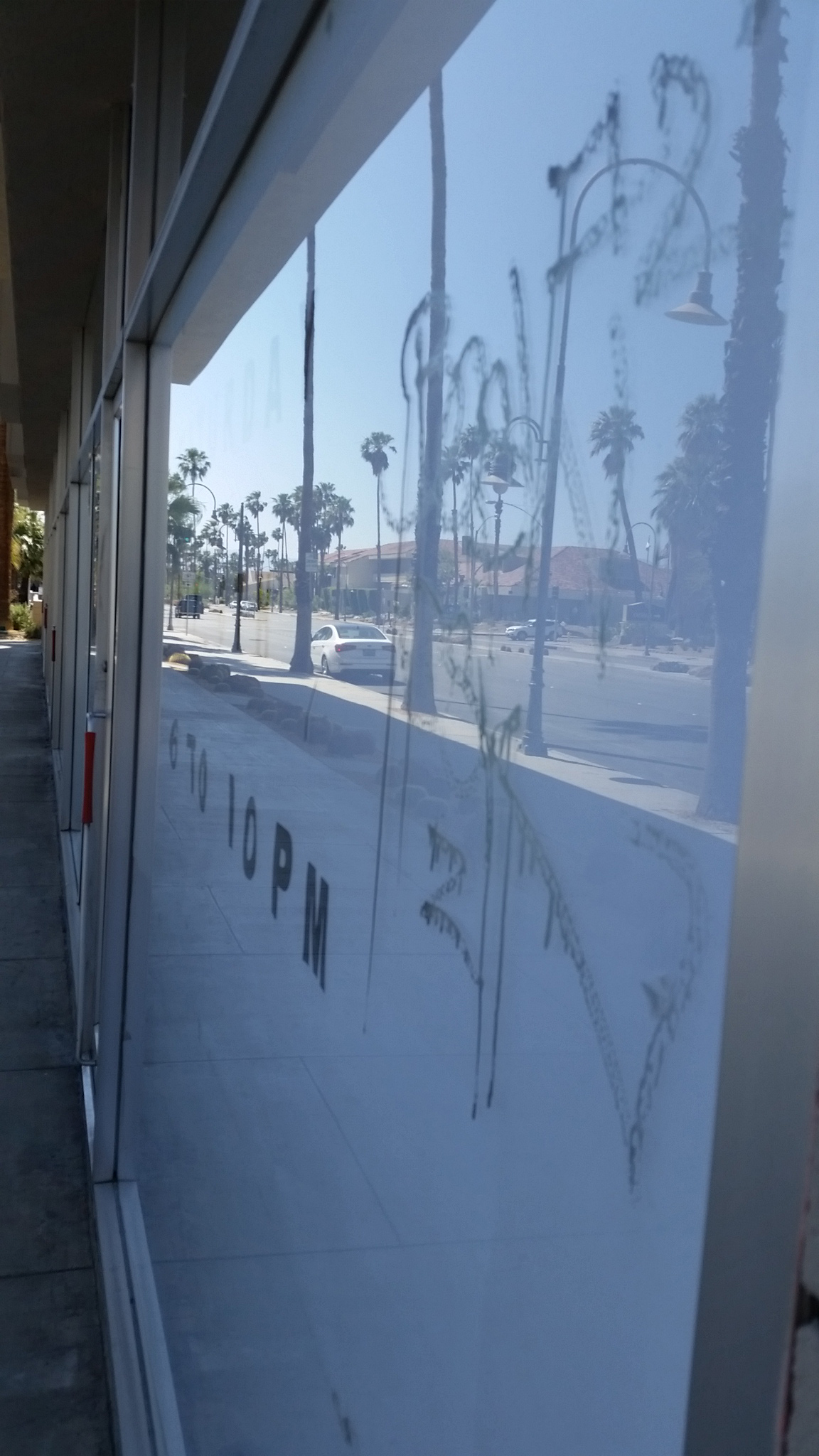 Acid etching grafitti is a form of glass damage caused by acid burns mixed with piant or white shoe polish. Somtimes it is accompanied by scratching underneath the acid etching damage. We remove and apply the Diamon-Fusion® process to frustrate the future re-tagging efforts of criminals by making the acid not stick to the glass in the same manner as ordinary glass. This dissuasion helps reduce return taggers.